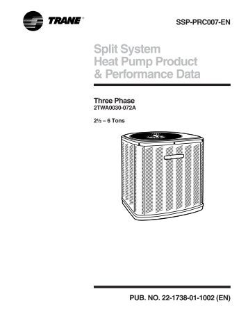 Split System Heat Pump Product & Performance Data PUB. NO. 22-1772-03 W = Split Heat Pump T = Split Cooling Product Family Z = Leadership – Two Stage Trane Split System Heat Pump Product and Performace Data XR13 2TWR3018-060 ... Get Content Here